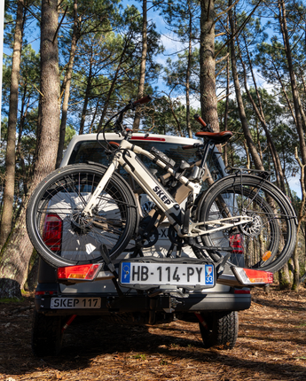 - Maximale Last: Die zulässige vertikale Last (oder "S"-Last) muss mit dem Gesamtgewicht des SKEP 117, des Fahrradträgers und der transportierten Fahrräder kompatibel sein. Die "S"-Last der Anhängerkupplung (angegeben auf einem an der Anhängerkupplung vernieteten Schild) muss berücksichtigt werden, um diese Grenze nicht zu überschreiten.